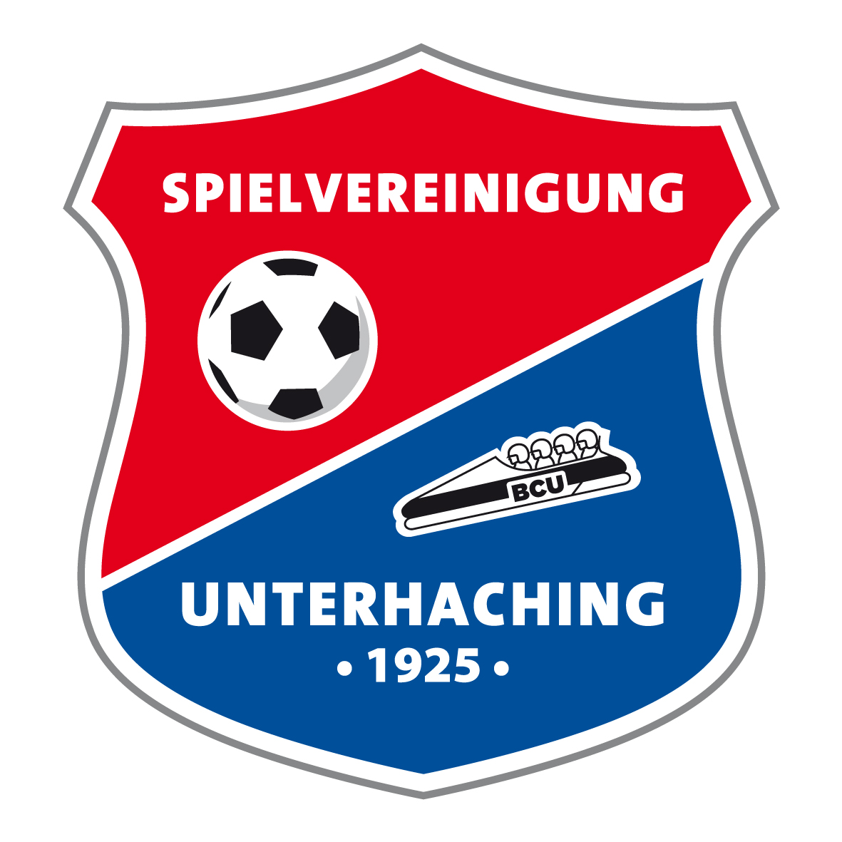 8. Spielvereinigung Unterhaching – Fußball und Bobsport. Das ist die SpVgg Unterhaching. Klar, dass das auch im Wappen deutlich werden muss. Diese ungewöhnliche Kombination macht das Logo sympathisch. Allerdings ist der Bob etwas zu dominant und für meine Begriffe nicht stilisiert genug. Ebenso der Ball. Hier wäre weniger mehr gewesen. Auch die Typo ist mir hier etwas zu langweilig. Die Farbgebung ist Gewöhnungssache, dafür gefällt die Wappenform.